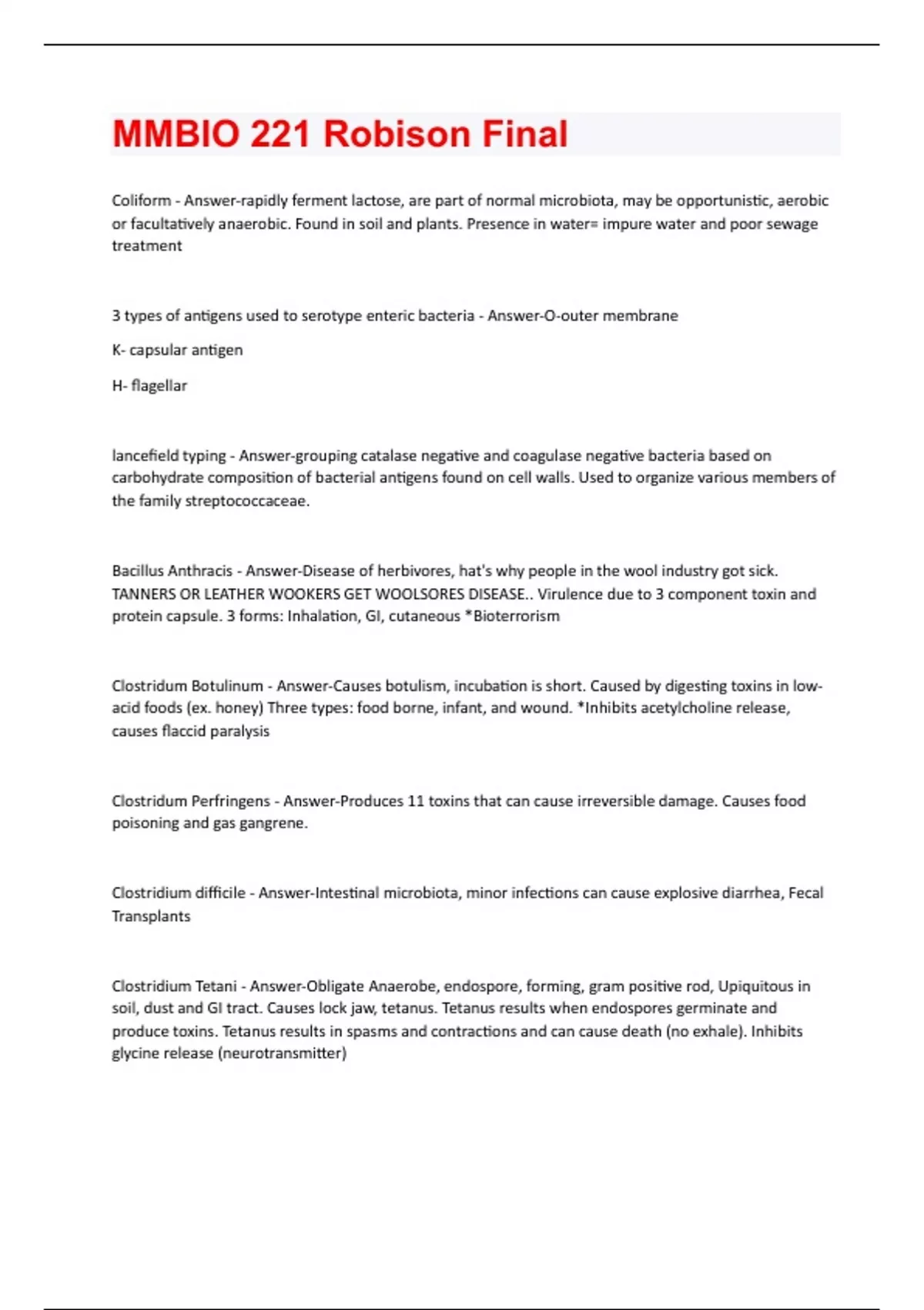 MMBIO 221 Robison Final Latest Questions With Solved Correctly Answers!!