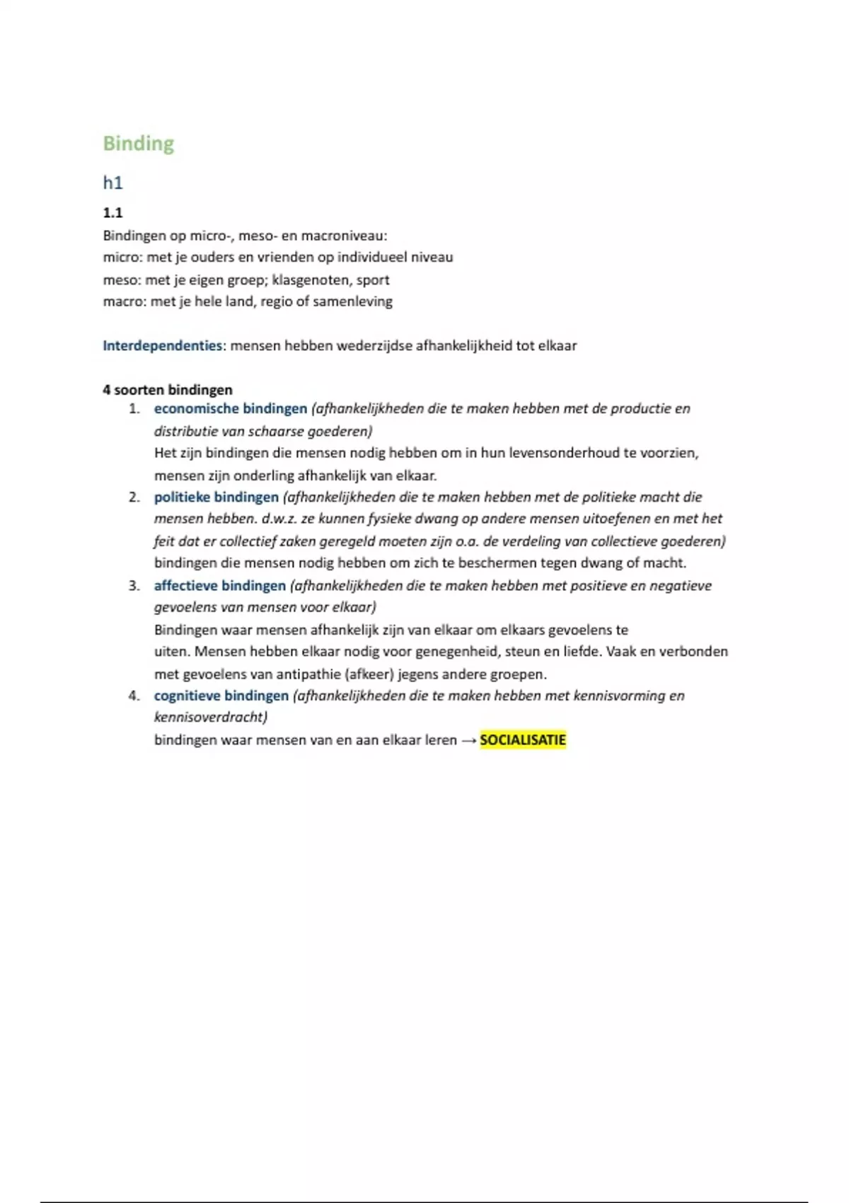 Samenvatting maatschappijwetenschappen domein D, Binding.