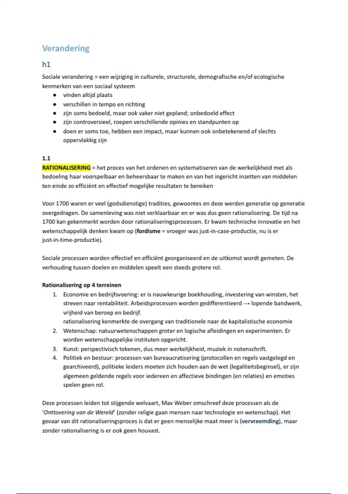 Sociale verandering = een wijziging in culturele, structurele, demografische en/of ecologische