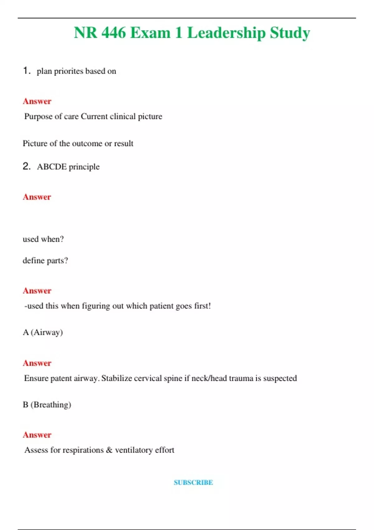 NR 446 Exam 1 Leadership Study (Latest 2024 / 2025) Questions and Answers (Verified Answers)