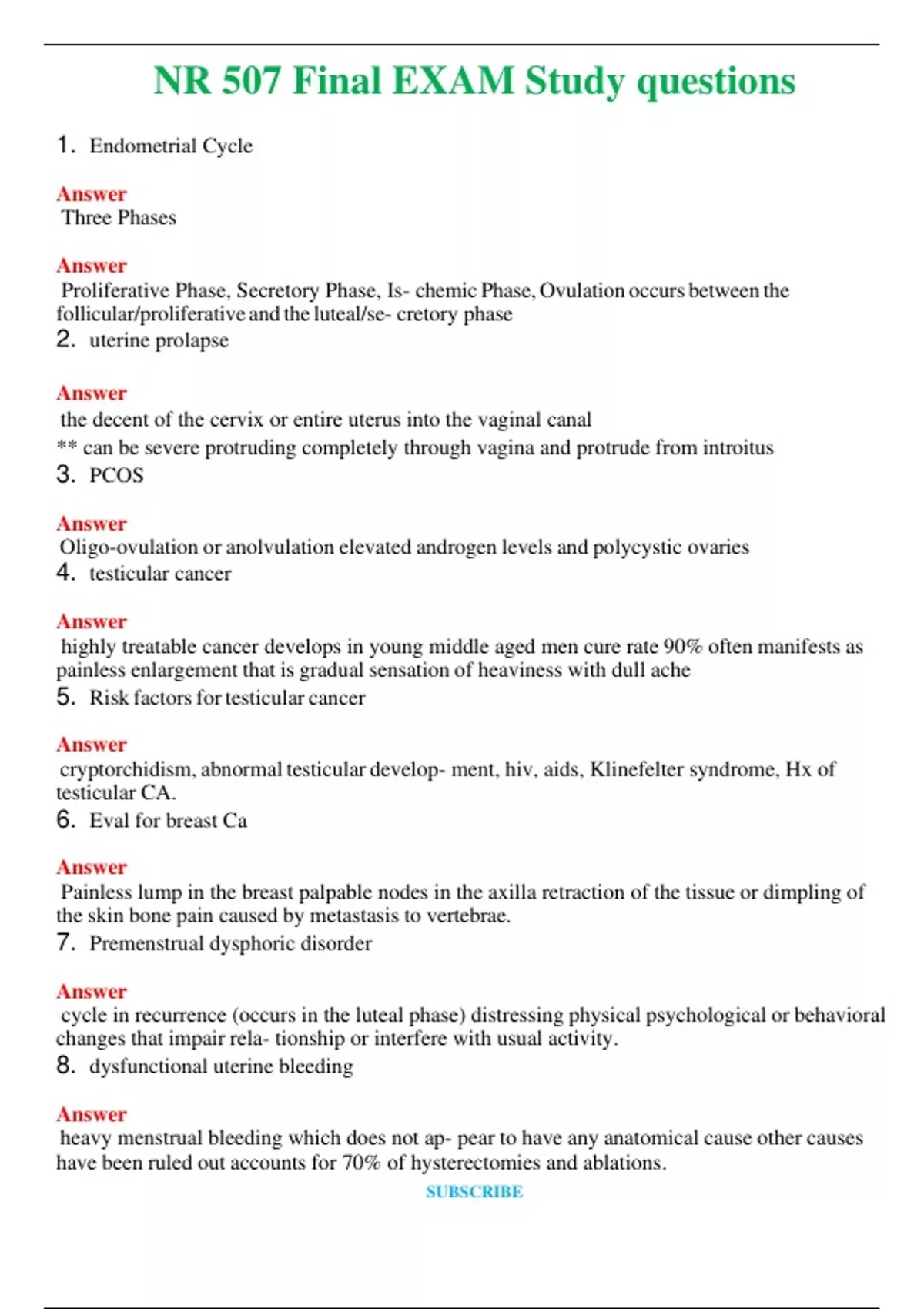 nr 507 final exam study questions