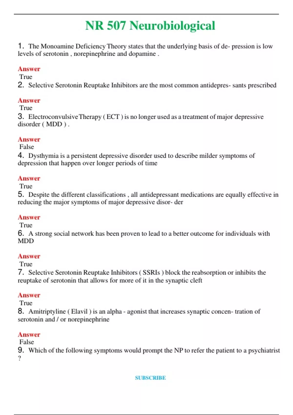 NR 507 Neurobiological (Latest 2024 / 2025) Questions and Answers (Verified Answers)