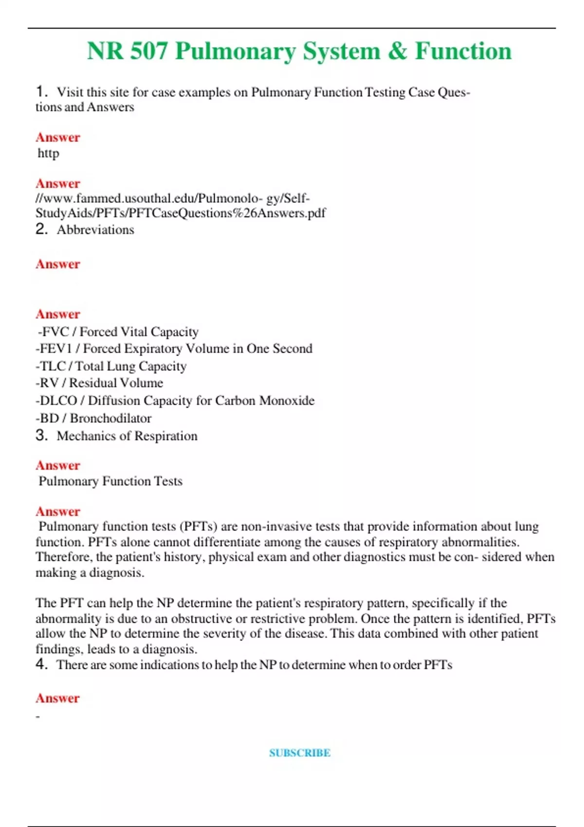 NR 507 Pulmonary System & Function (Latest 2024 / 2025) Questions and Answers (Verified Answers)