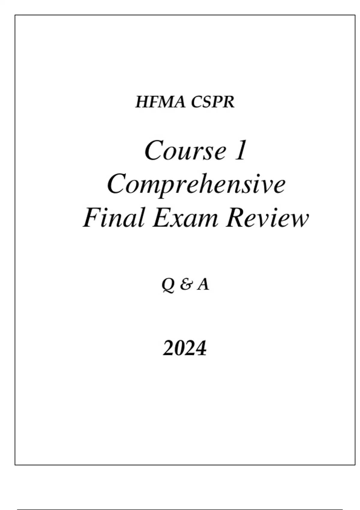 HFMA CSPR COURSE 1 MANAGED CARE OVERVIEW COMPREHENSIVE EXAM REVIEW Q & A 2024HFMA CSPR COURSE 1 MANAGED CARE OVERVIEW COMPREHENSIVE EXAM REVIEW Q & A 2024
