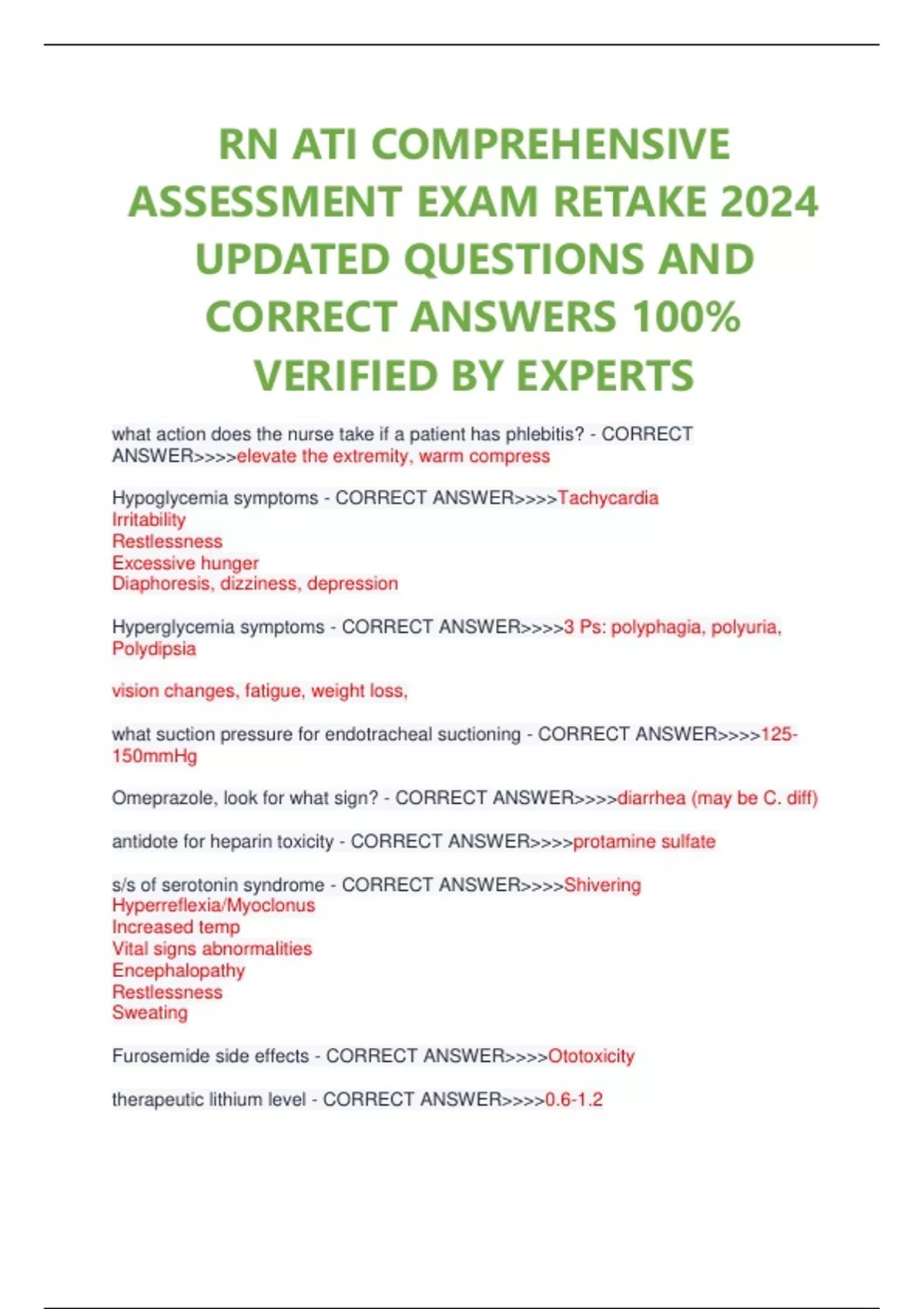 RN ATI COMPREHENSIVE ASSESSMENT EXAM RETAKE 2024 UPDATED QUESTIONS AND CORRECT ANSWERS 100% VERIFIED BY EXPERTS