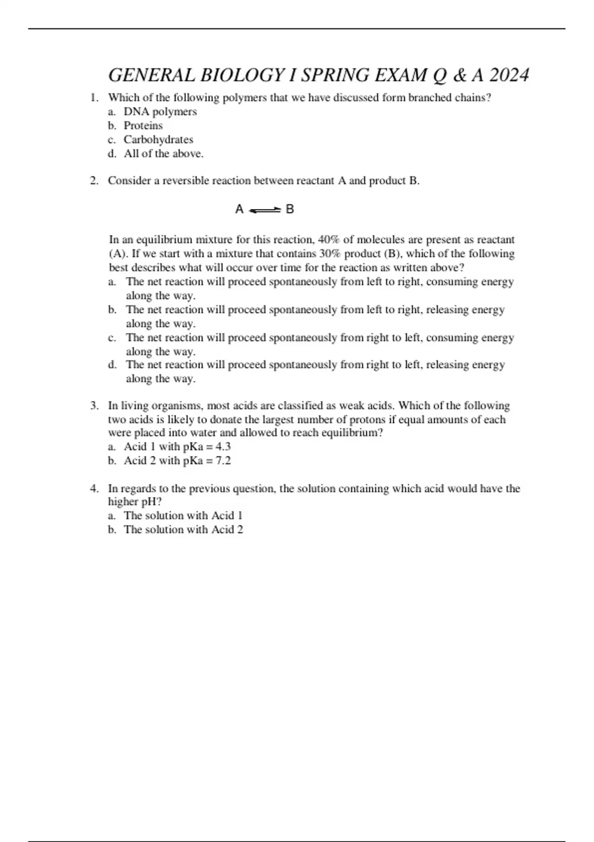 GENERAL BIOLOGY 1 SPRING TEST Q & A 2024