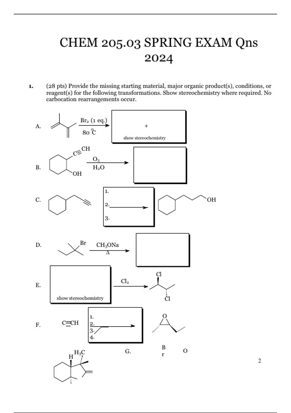 CHEM 205.03 SPRING EXAM Qns 2024