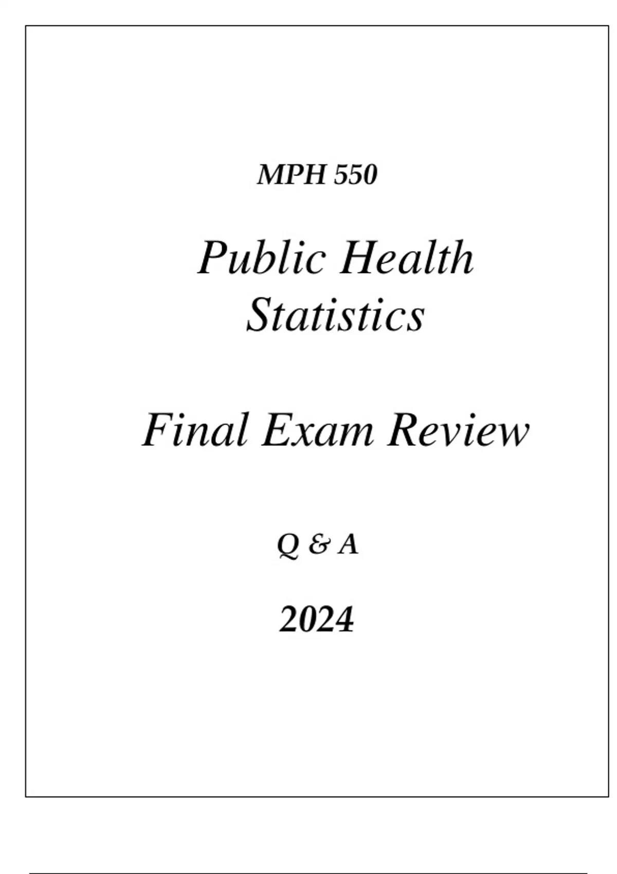 (UOP) MPH 550 PUBLIC HEALTH STATISTICS COMPREHENSIVE FINAL EXAM REVIEW Q & A