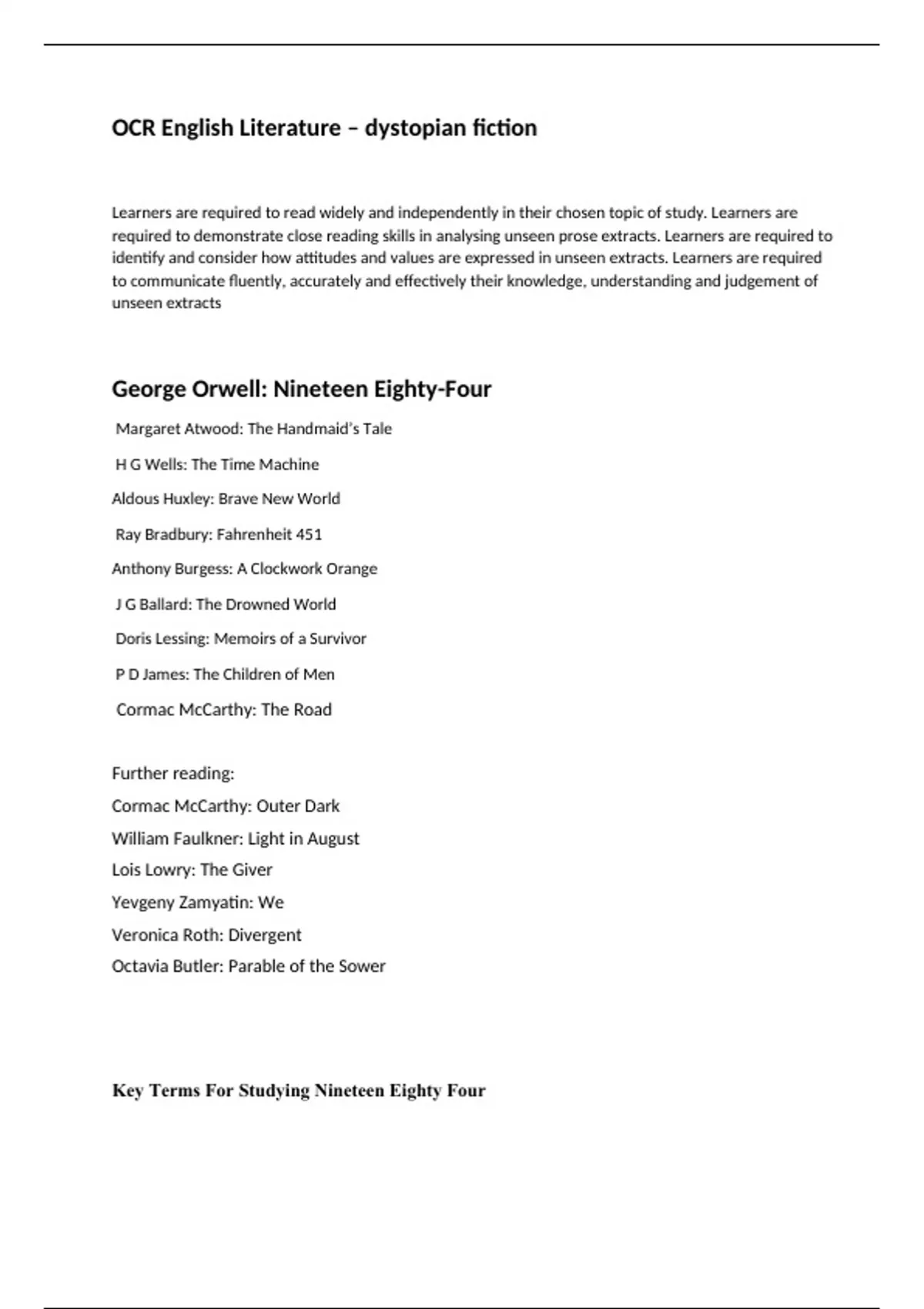 OCR English Literature – dystopian fiction