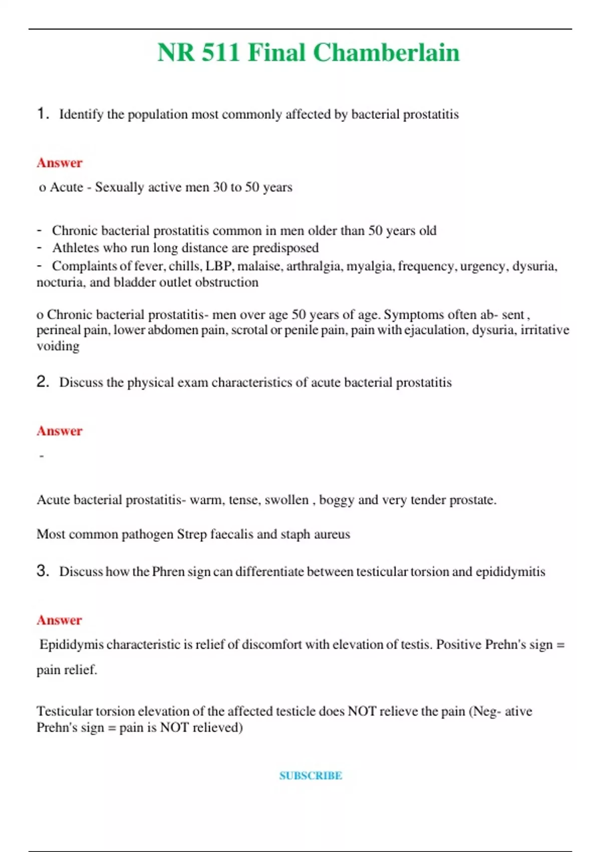 NR 511 Final Chamberlain (Latest 2024 / 2025) Questions and Answers (Verified Answers)