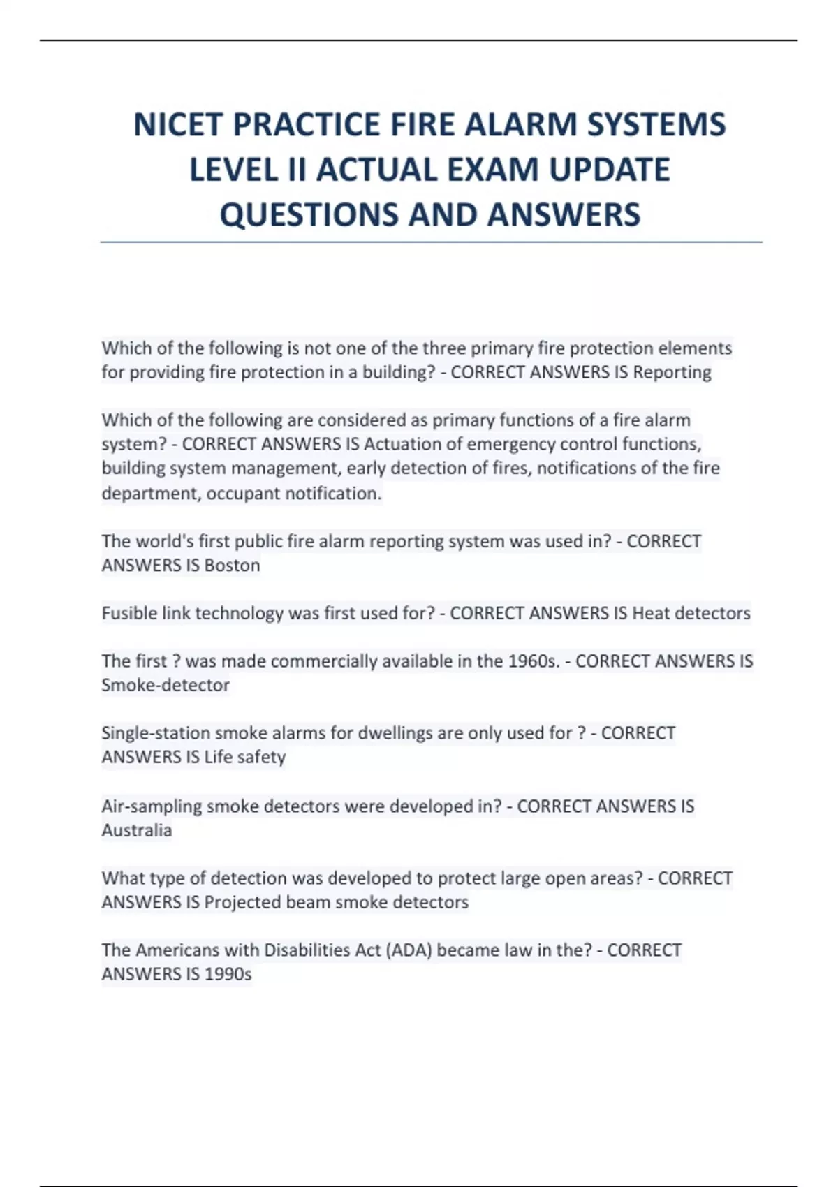 NICET PRACTICE FIRE ALARM SYSTEMS LEVEL II ACTUAL EXAM UPDATE QUESTIONS AND