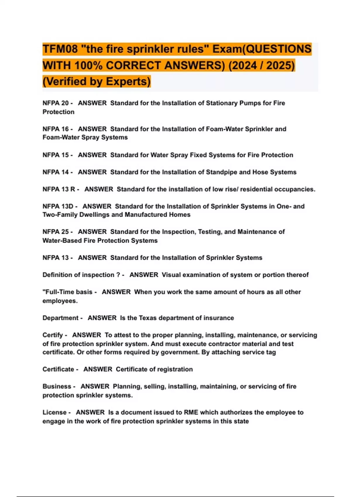 TFM08 "the fire sprinkler rules" Exam(QUESTIONS WITH 100% CORRECT ANSWERS) (2024 / 2025) (Verified by Experts)