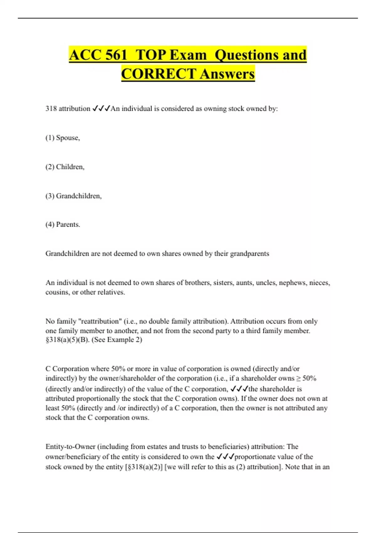ACC 561 TOP Exam Questions and CORRECT Answers