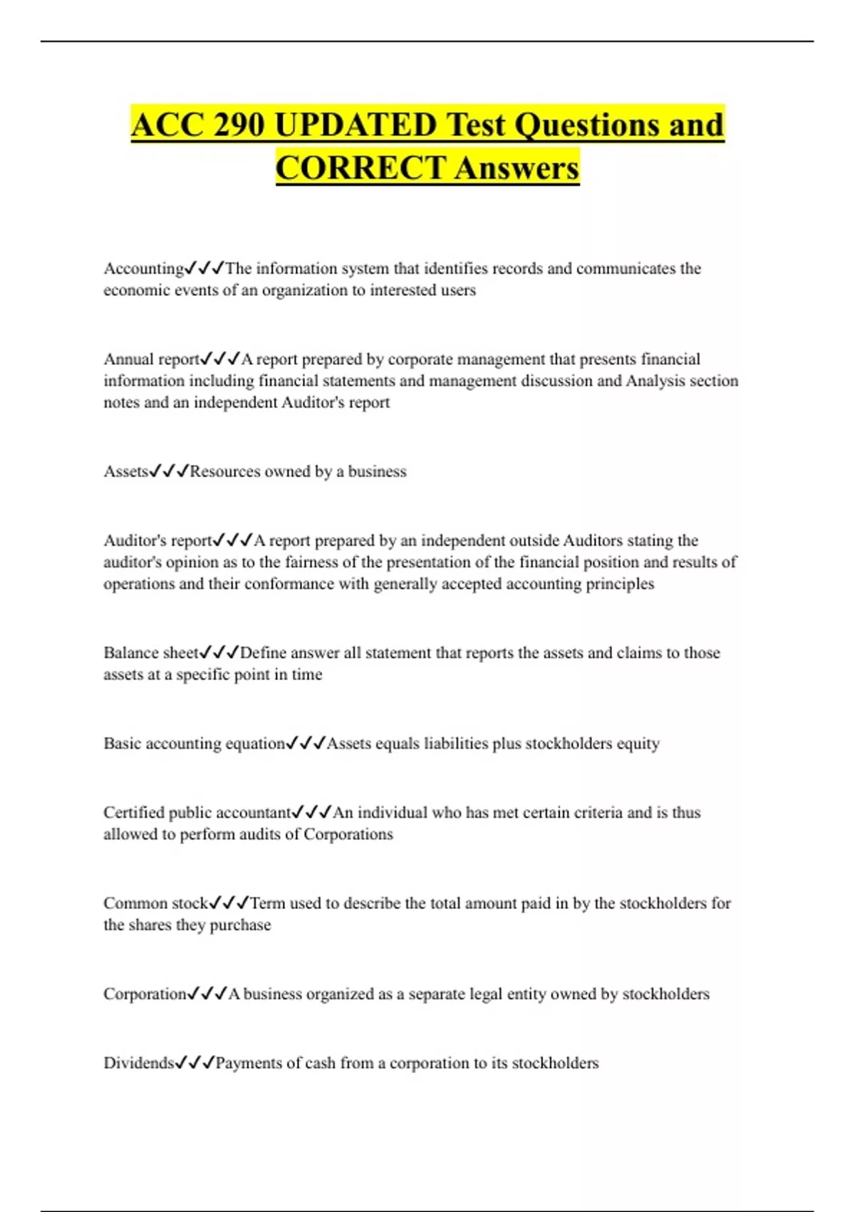 ACC 290 UPDATED Test Questions and CORRECT Answers