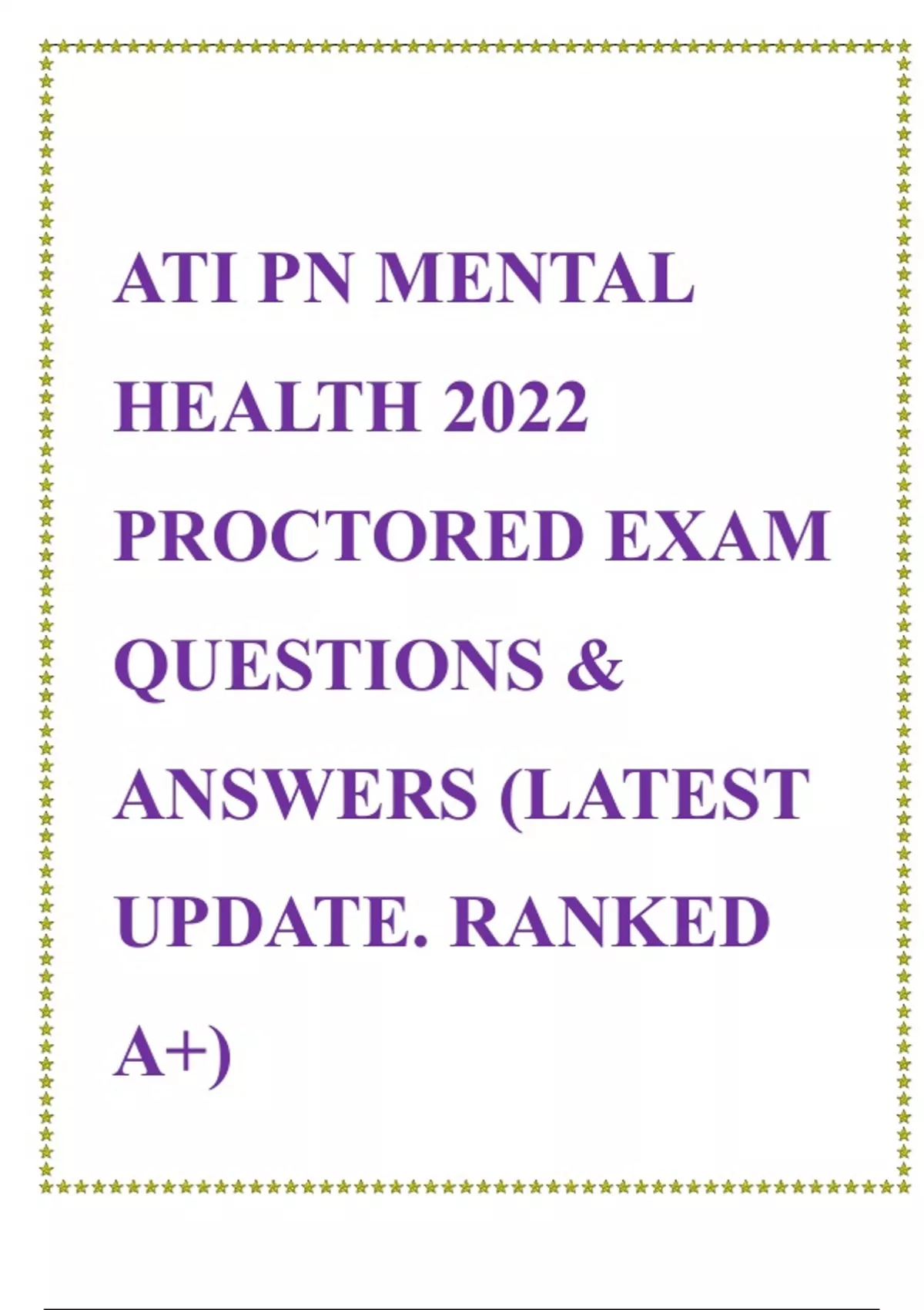 ATI PN MENTAL HEALTH 2022 PROCTORED EXAM QUESTIONS & ANSWERS (LATEST UPDATE. RANKED A+)
