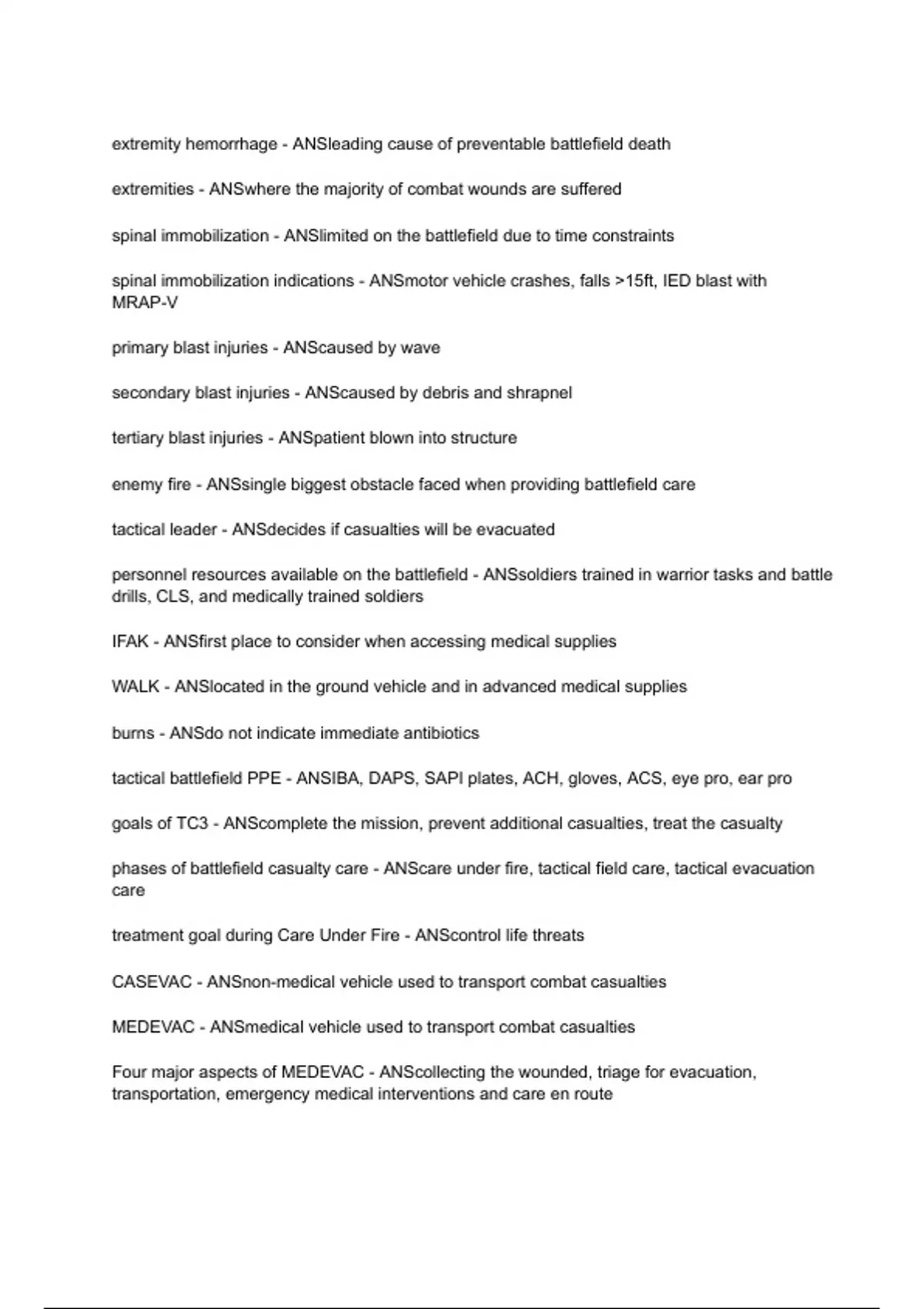 phases of battlefield casualty care - ANScare under fire, tactical field care, tactical evacuation