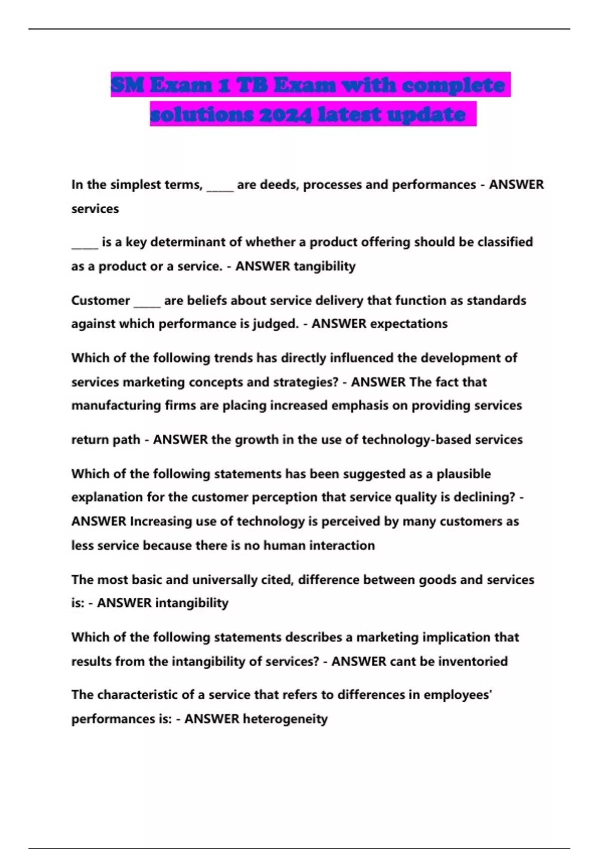SM Exam 1 TB Exam with complete solutions 2024 latest update...