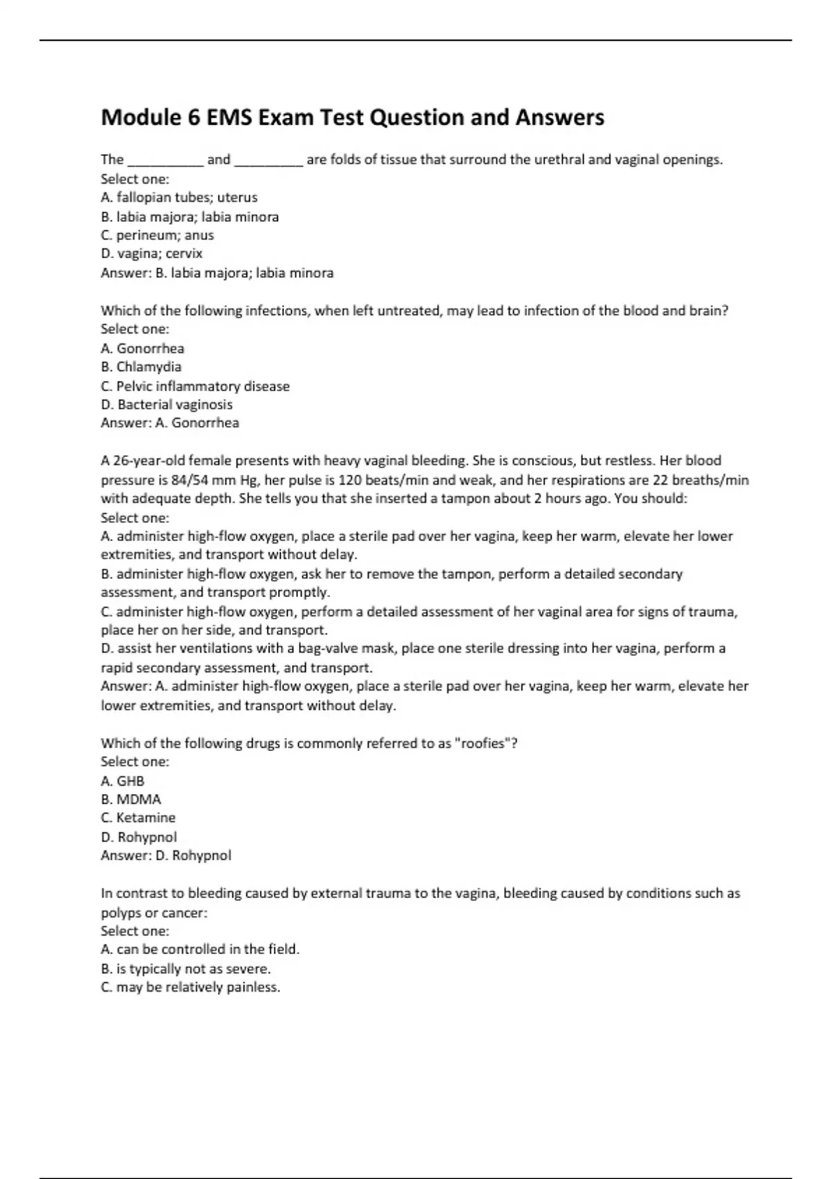Module 6 EMS Exam Test Question and Answers EMT practice test questions and answers EMT exam questions and answers PDF EMT exam test EMT exam study guide EMT exam preparation EMT study set
