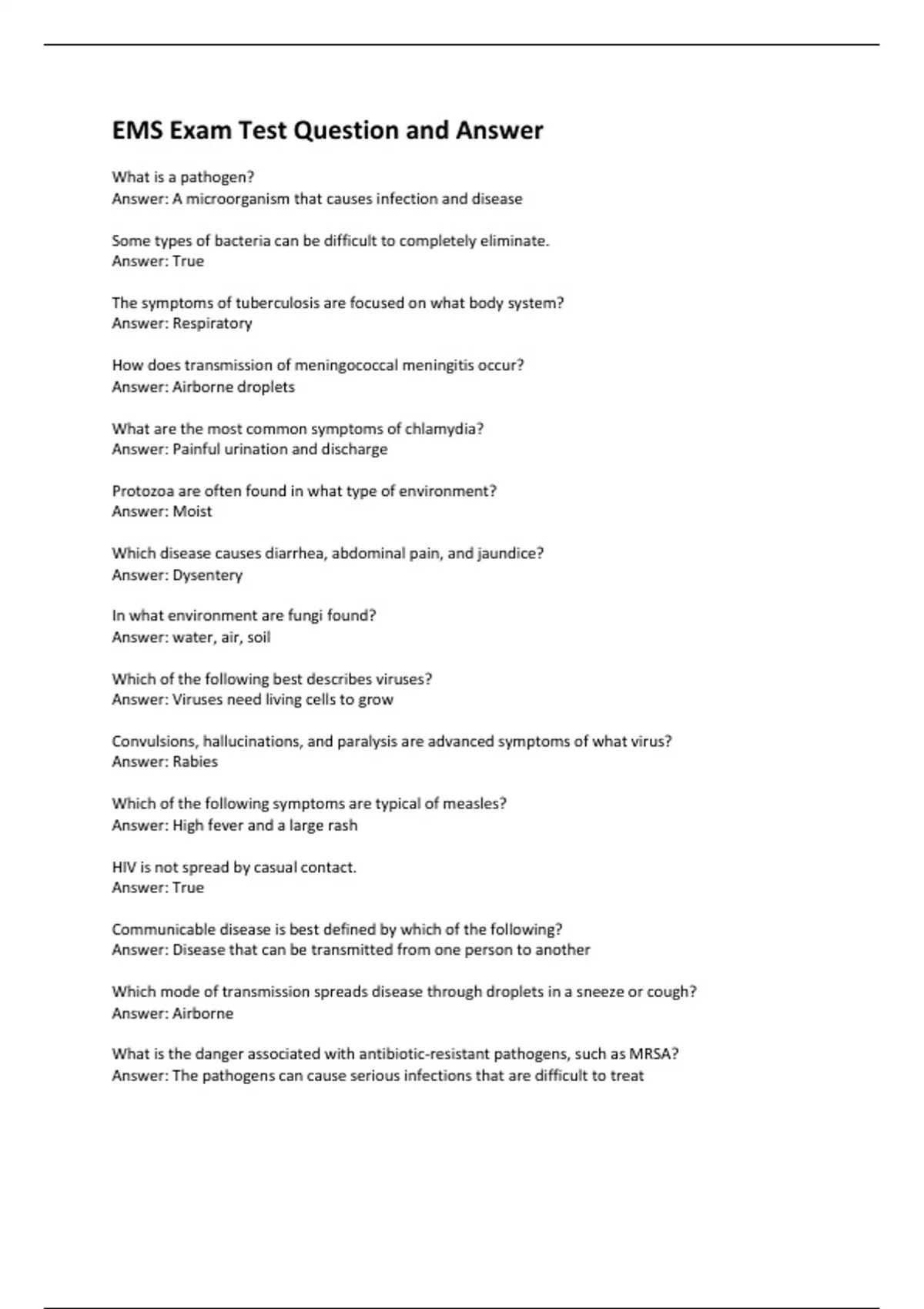 EMS Exam Test Question and Answer