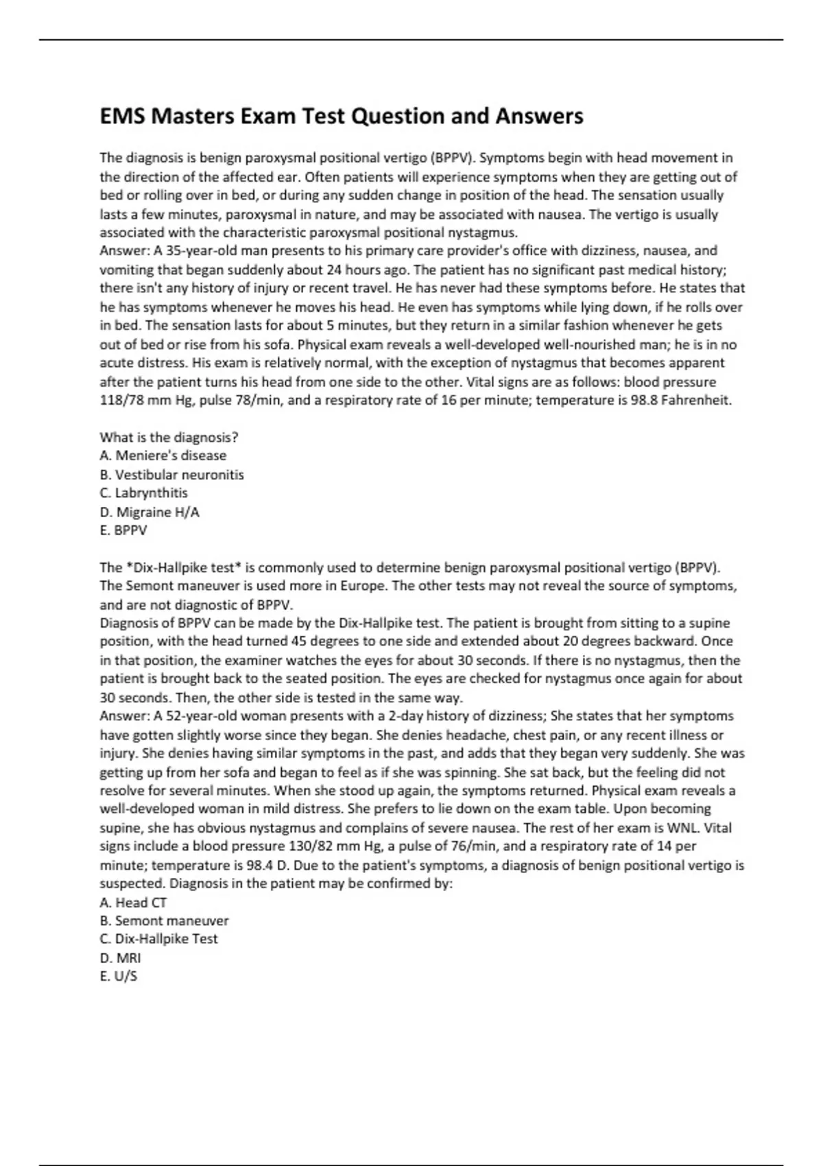 EMS Masters Exam Test Question and Answers EMT practice test questions and answers EMT exam questions and answers PDF EMT exam test EMT exam study guide EMT exam preparation EMT study set