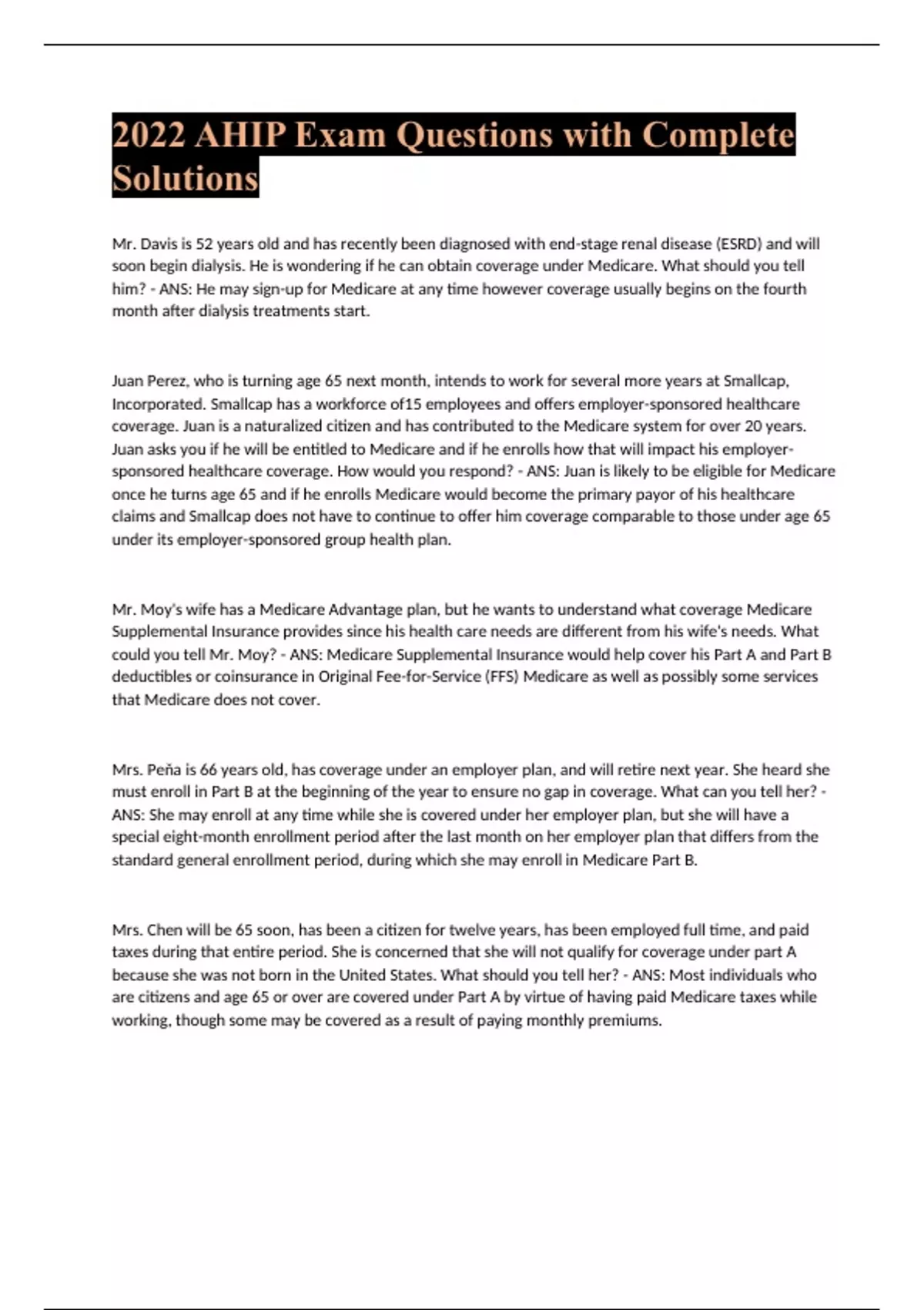 2022 AHIP Exam Questions with Complete Solutions