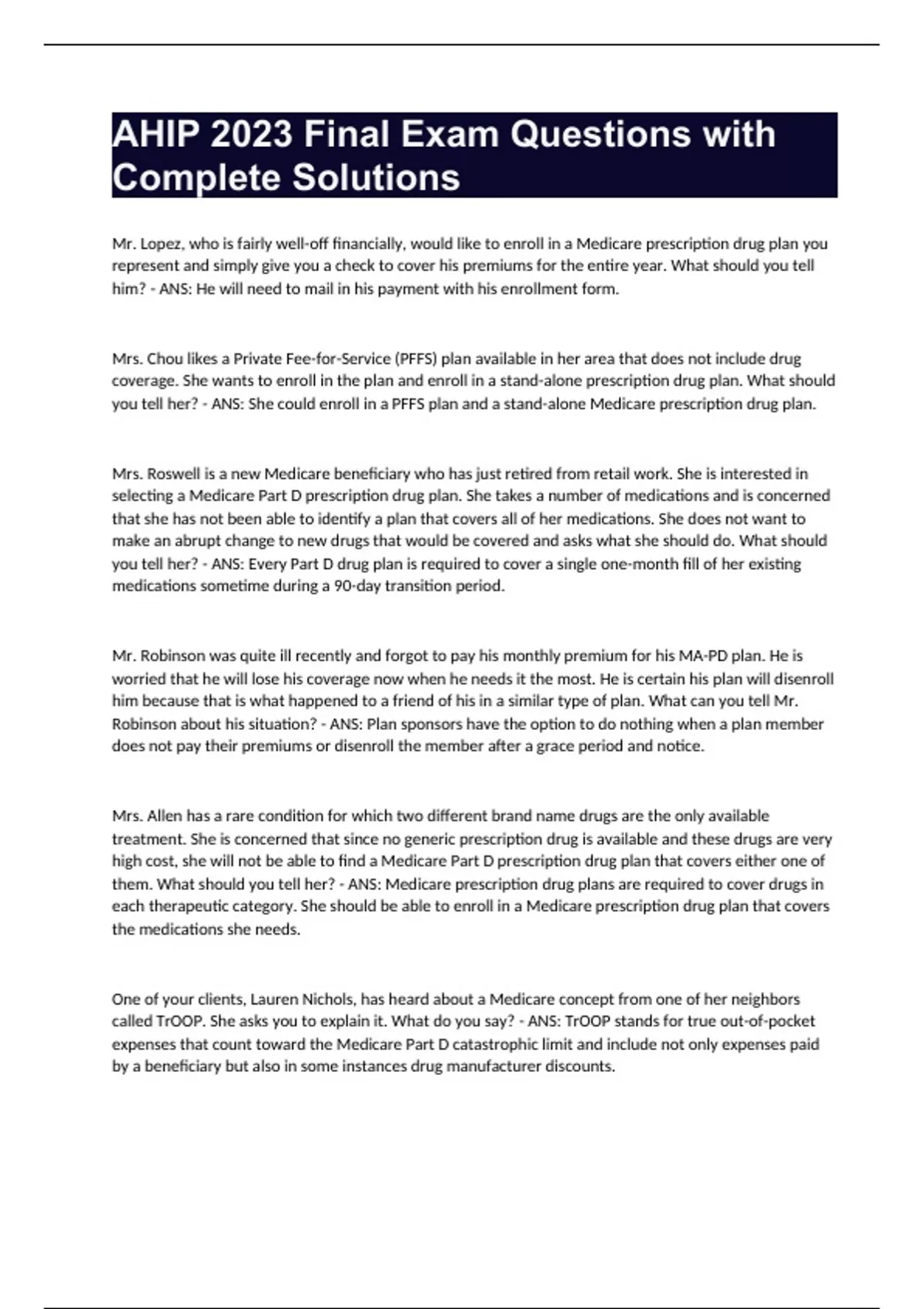 AHIP 2023 Final Exam Questions with Complete Solutions.