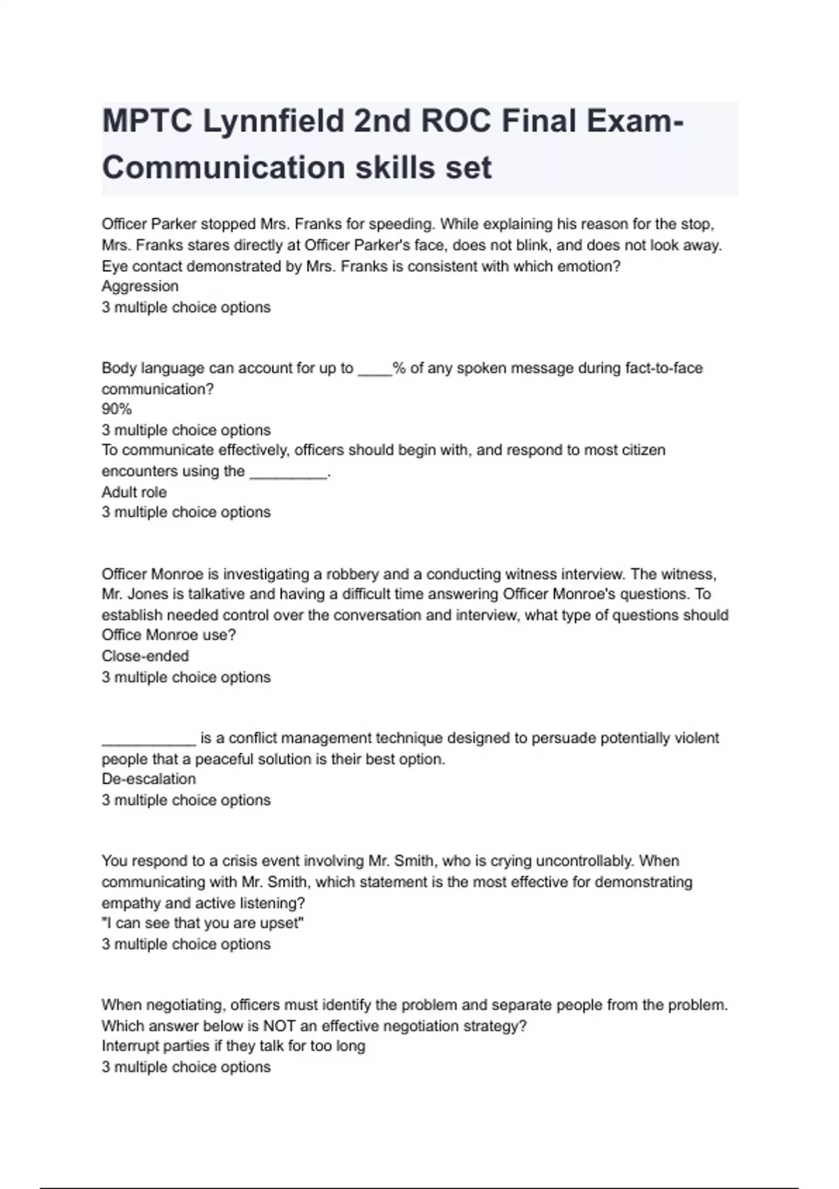 MPTC Lynnfield 2nd ROC Final Exam- Communication skills set