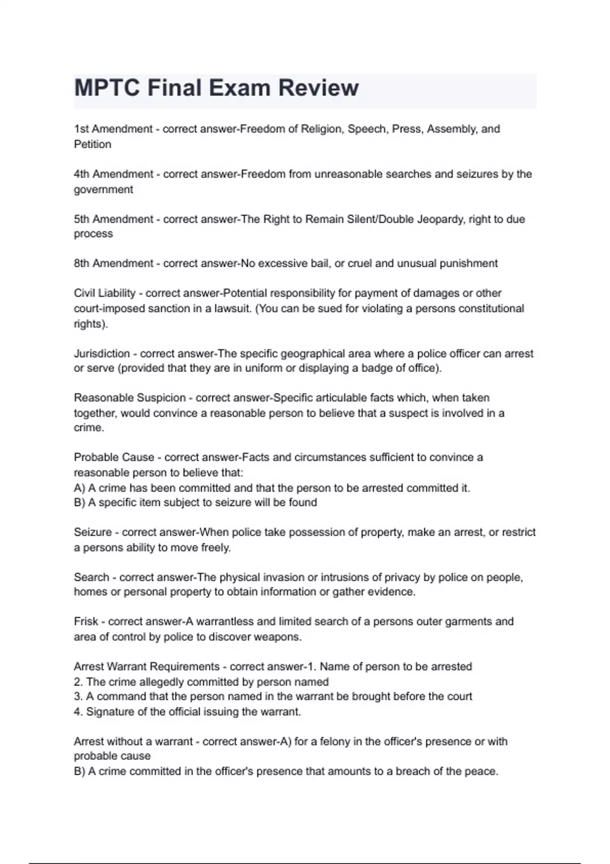 MPTC Final Exam Review questions & answers