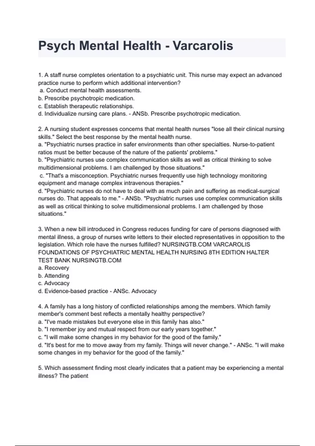 Psych Mental Health - Varcarolis 2024/2025 graded A+ by experts