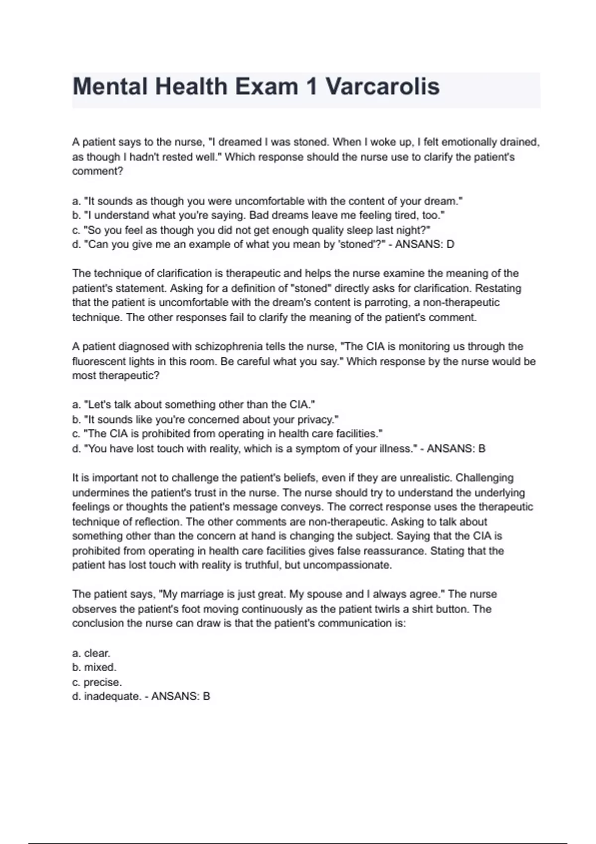 Mental Health Exam 1 Varcarolis 2024/2025 graded A+ by experts