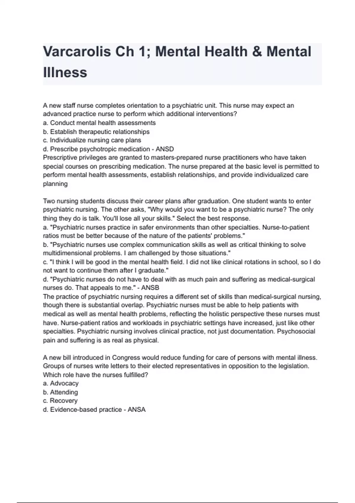 a. "Psychiatric nurses practice in safer environments than other specialties. Nurse-to-patient