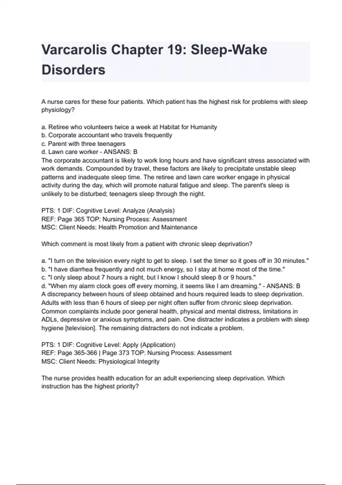 Varcarolis Chapter 19: Sleep-Wake Disorders 2024/2025 graded A+ by experts