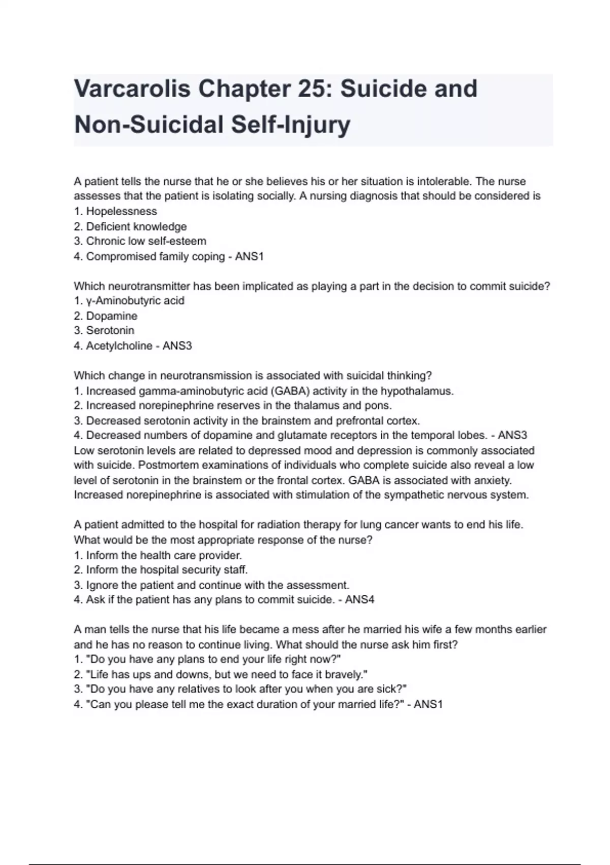 A patient tells the nurse that he or she believes his or her situation is intolerable. The nurse