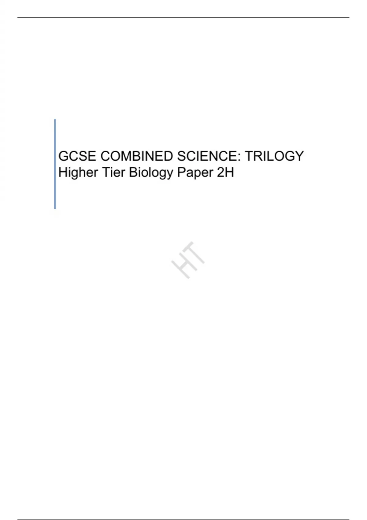 GCSE COMBINED SCIENCE: TRILOGY Higher Tier Biology Paper 2H