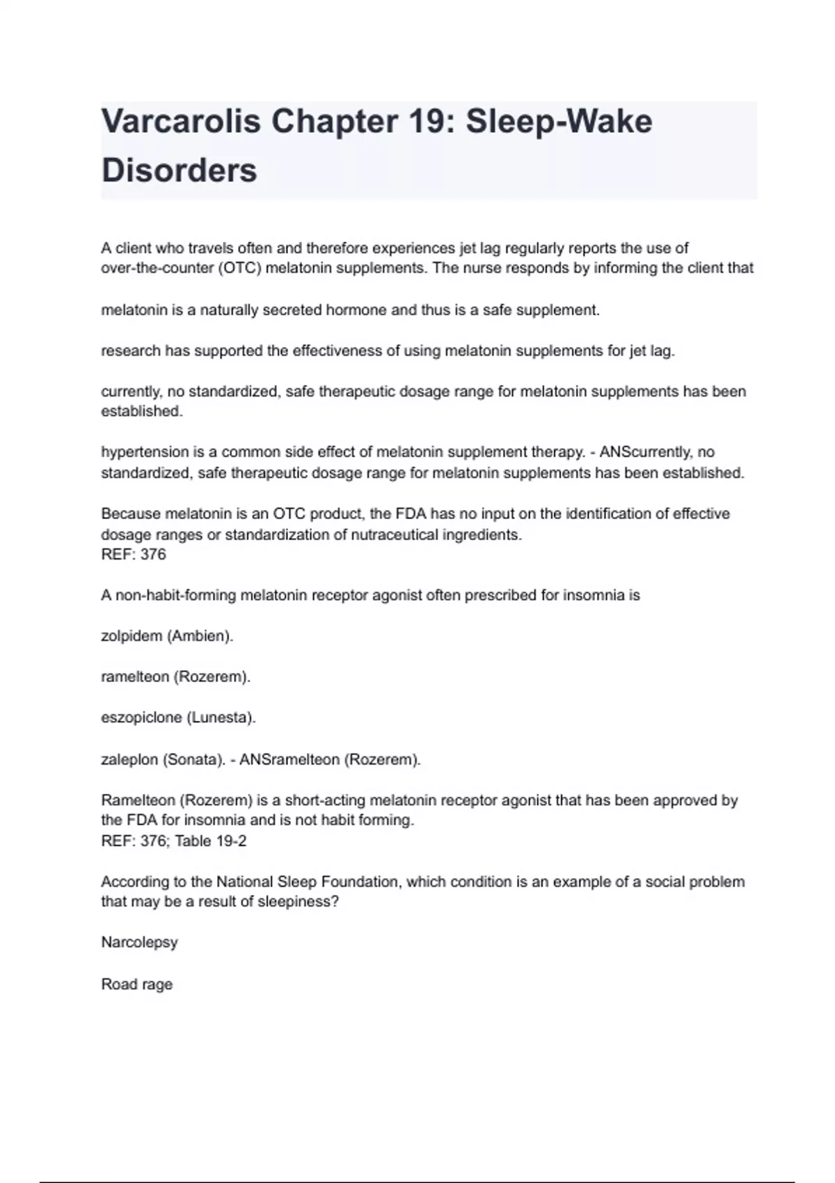 A client who travels often and therefore experiences jet lag regularly reports the use of
