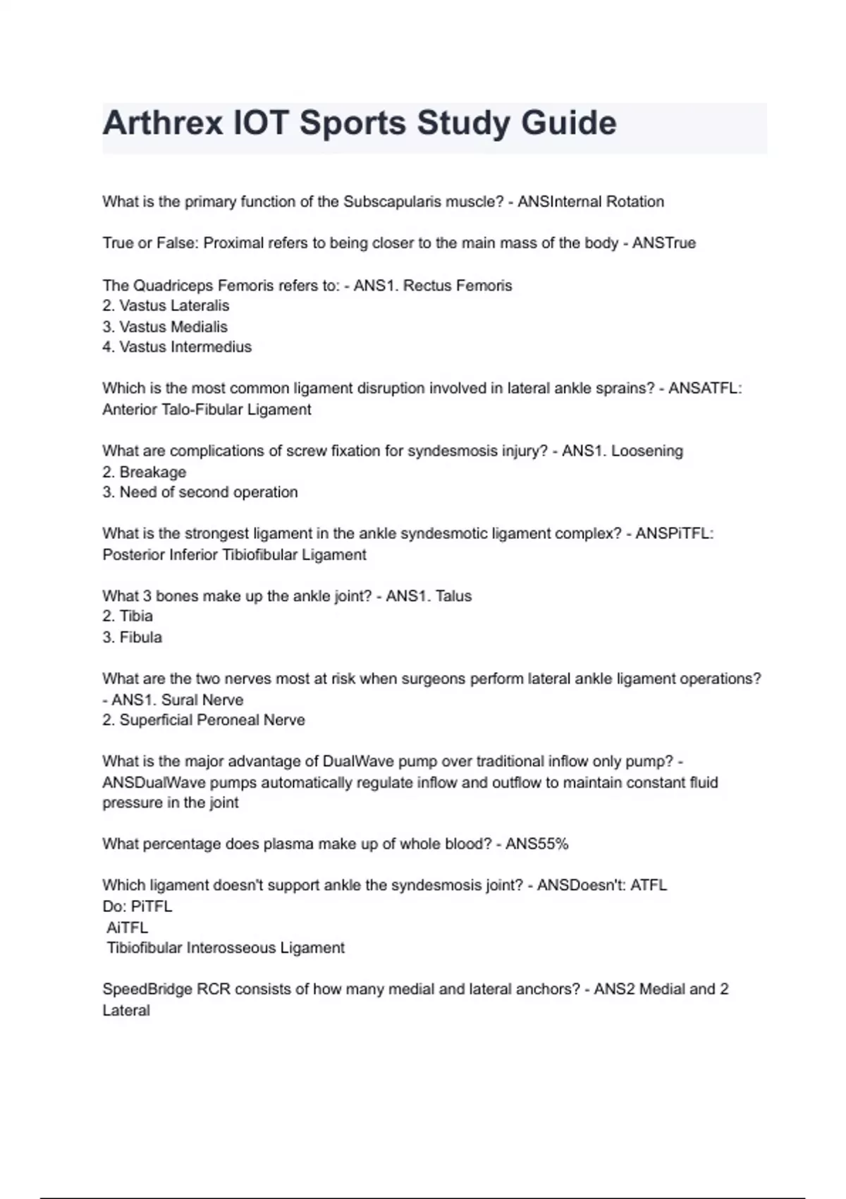 Arthrex IOT Sports Study Guide 2024/2025 graded A+ by experts