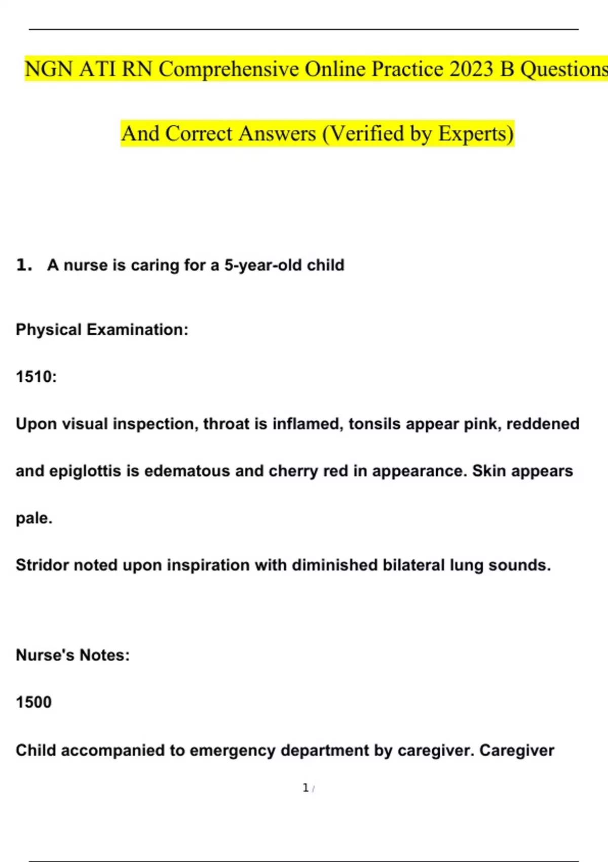 NGN ATI RN Comprehensive Online Practice 2023 B Questions and Answers (Verified Answers)