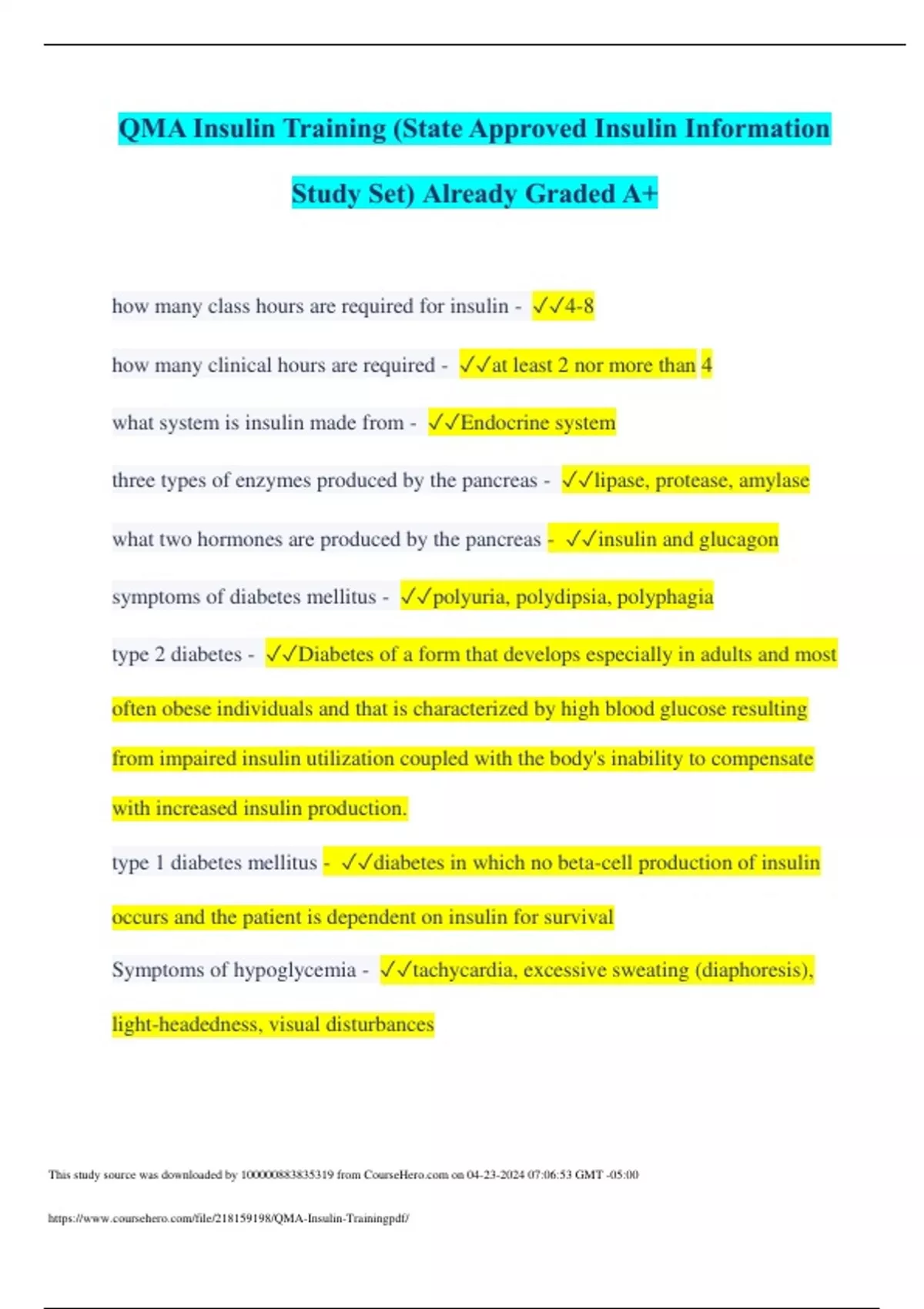 QMA Insulin Training (State Approved Insulin Information Study Set) Already Graded A+