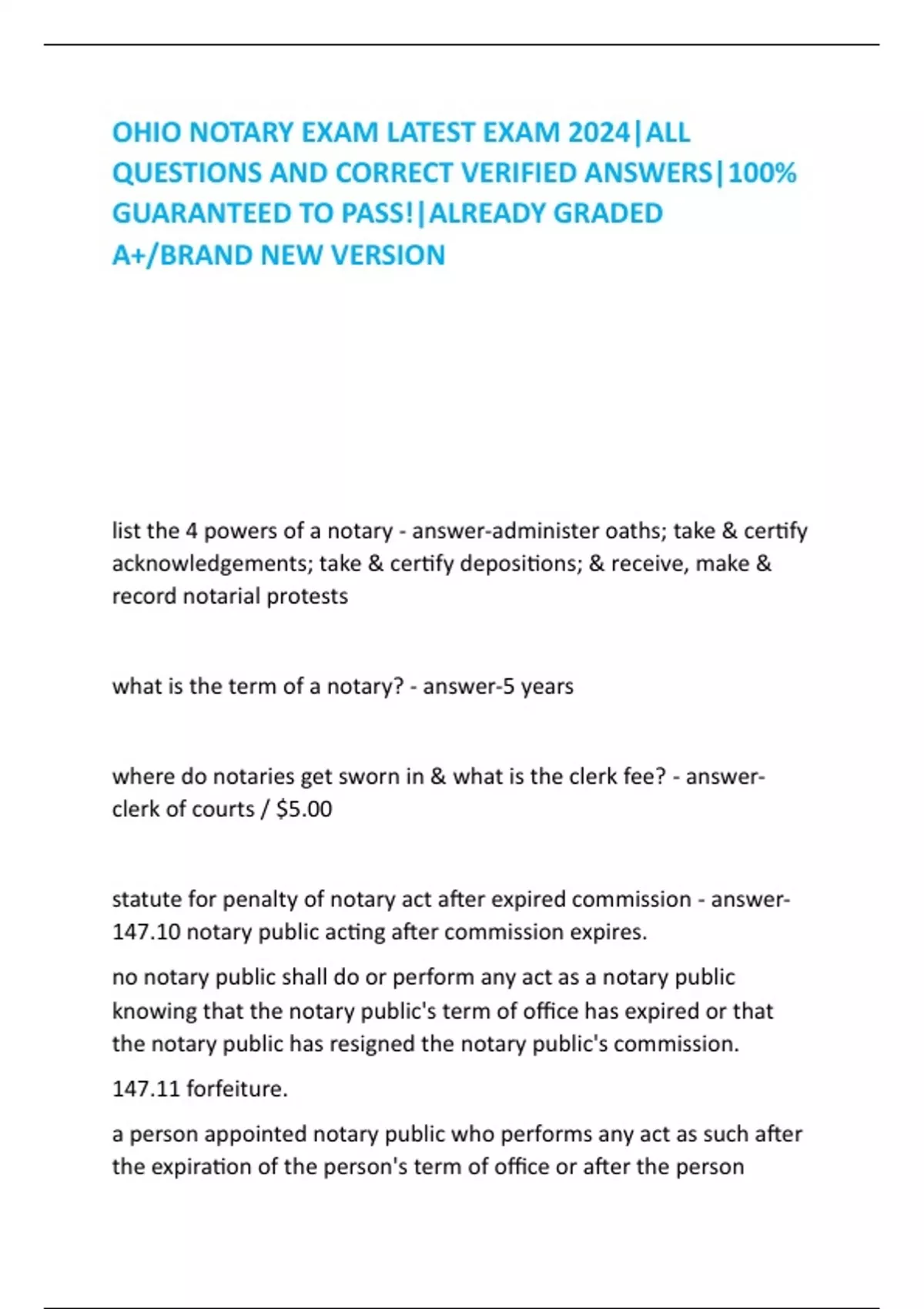 OHIO NOTARY EXAM LATEST EXAM 2024|ALL QUESTIONS AND CORRECT VERIFIED ANSWERS|100% GUARANTEED TO PASS!|ALREADY GRADED A+/BRAND NEW VERSION