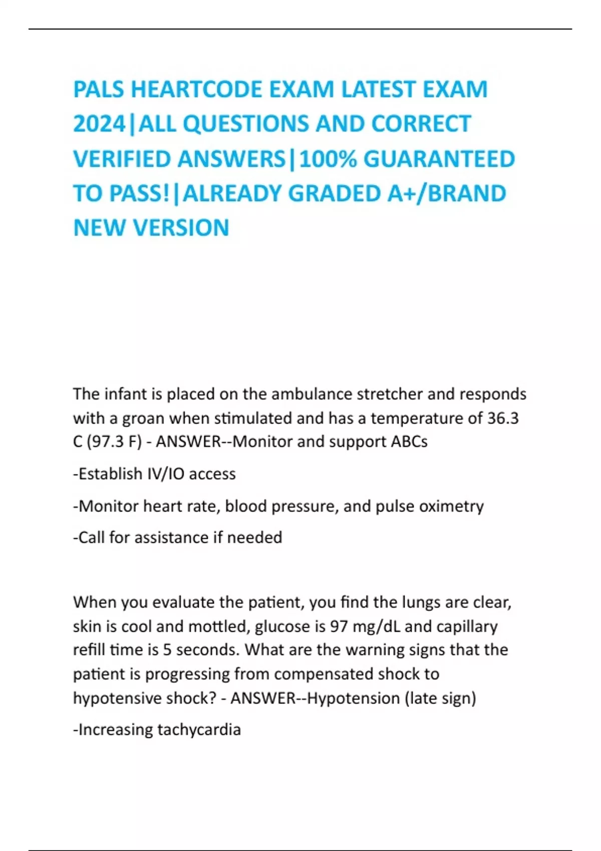 PALS HEARTCODE EXAM LATEST EXAM 2024|ALL QUESTIONS AND CORRECT VERIFIED ANSWERS|100% GUARANTEED TO PASS!|ALREADY GRADED A+/BRAND NEW VERSION