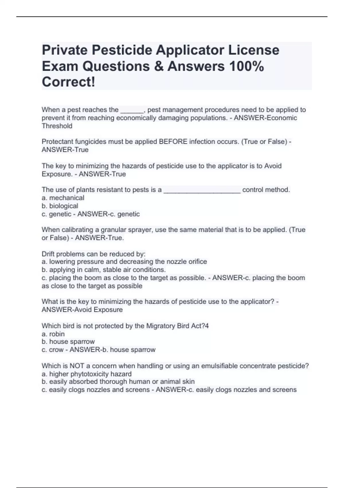 Private Pesticide Applicator License Exam Questions & Answers 100% Correct!