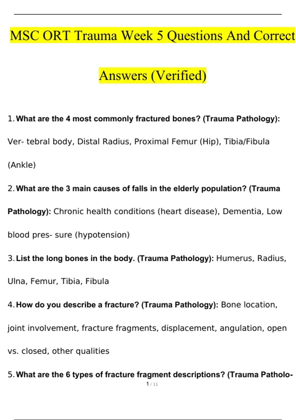 MSC ORT Trauma Week 5 Questions And Answers With Verified Study Set latest 2024