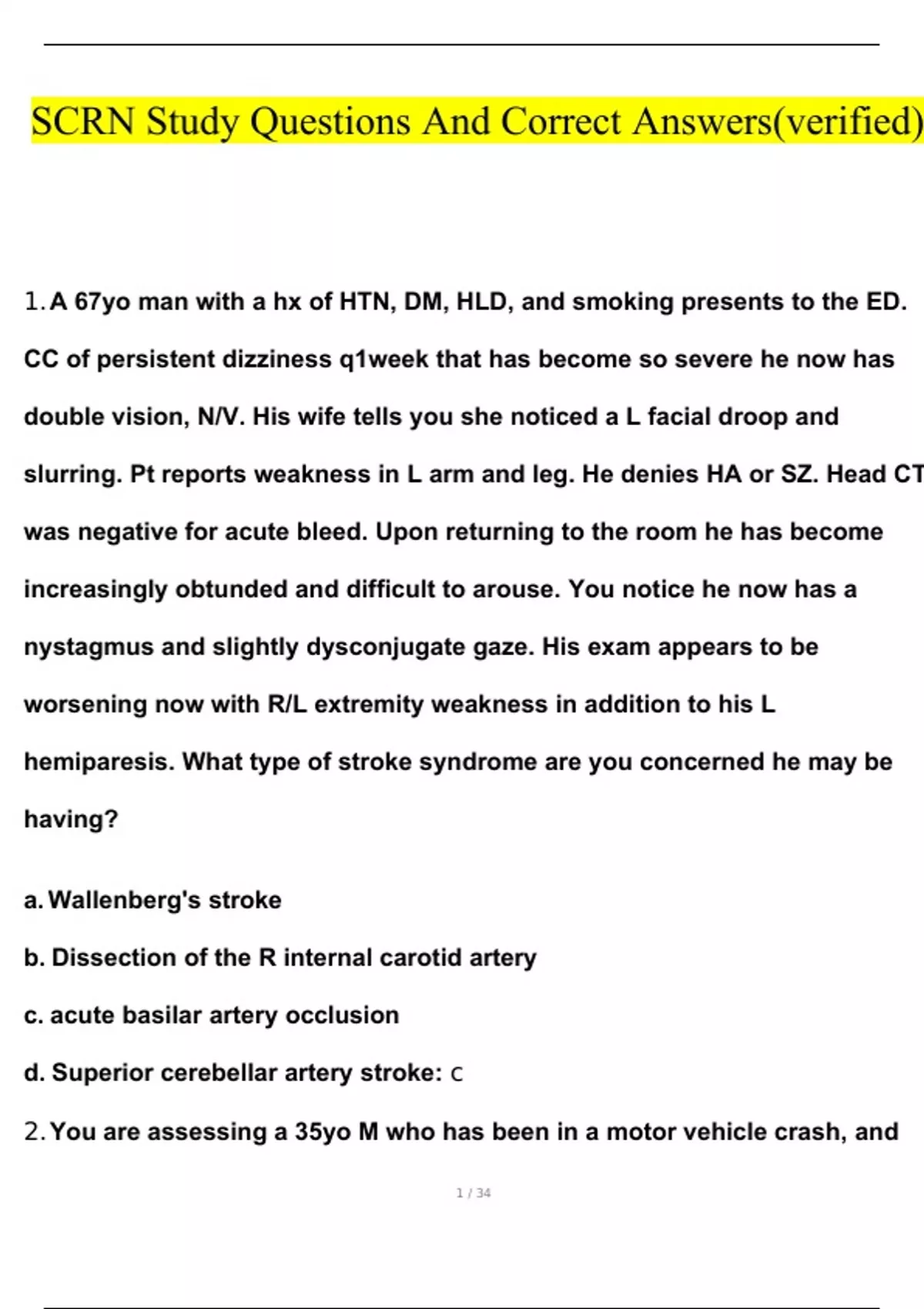 Stroke Certified Registered Nurse Certification (SCRN) Full Course Exam Bundled With Final Exam And Study Guide 2023
