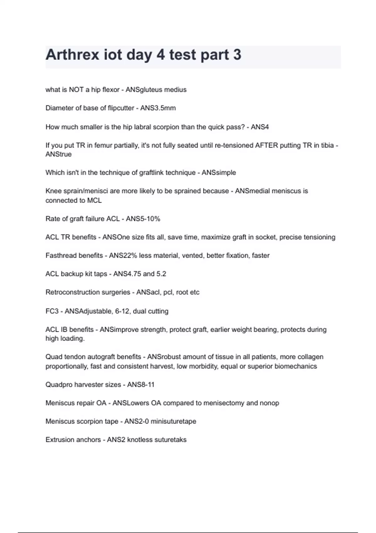 Arthrex iot day 4 test part 3 2024/2025 graded A+ by experts