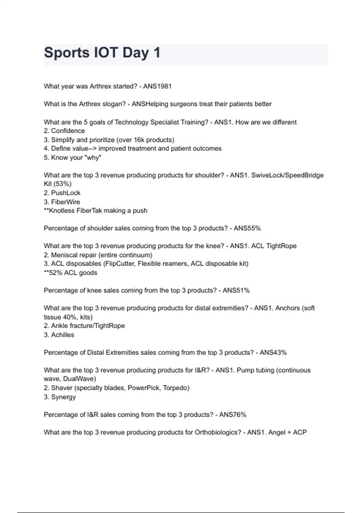 What are the top 3 revenue producing products for the knee? - ANS1. ACL TightRope