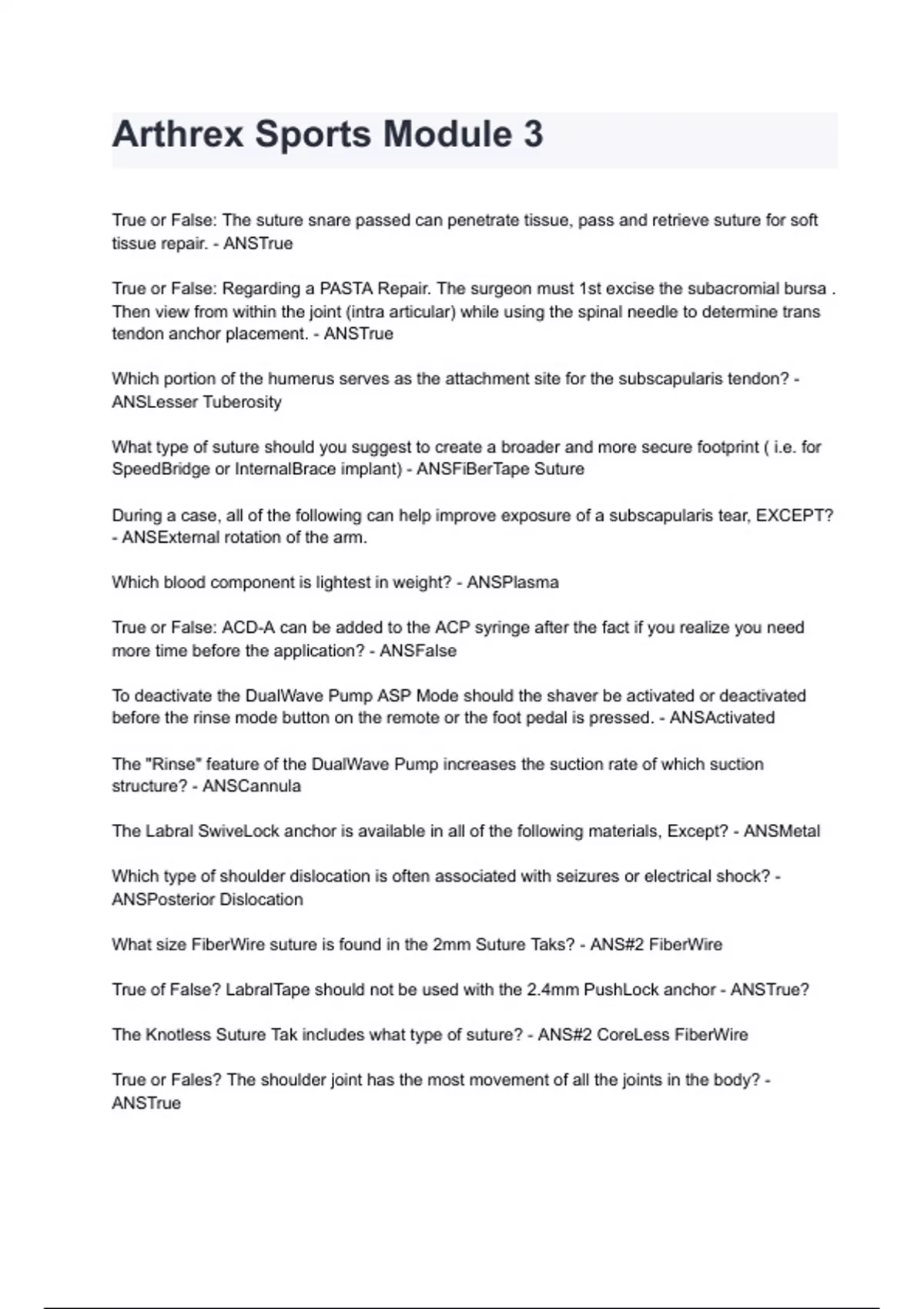 The Labral SwiveLock anchor is available in all of the following materials, Except? - ANSMetal