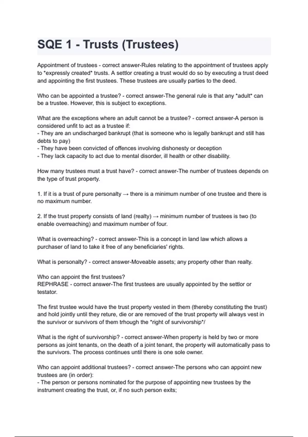 - Trusts Law SQE