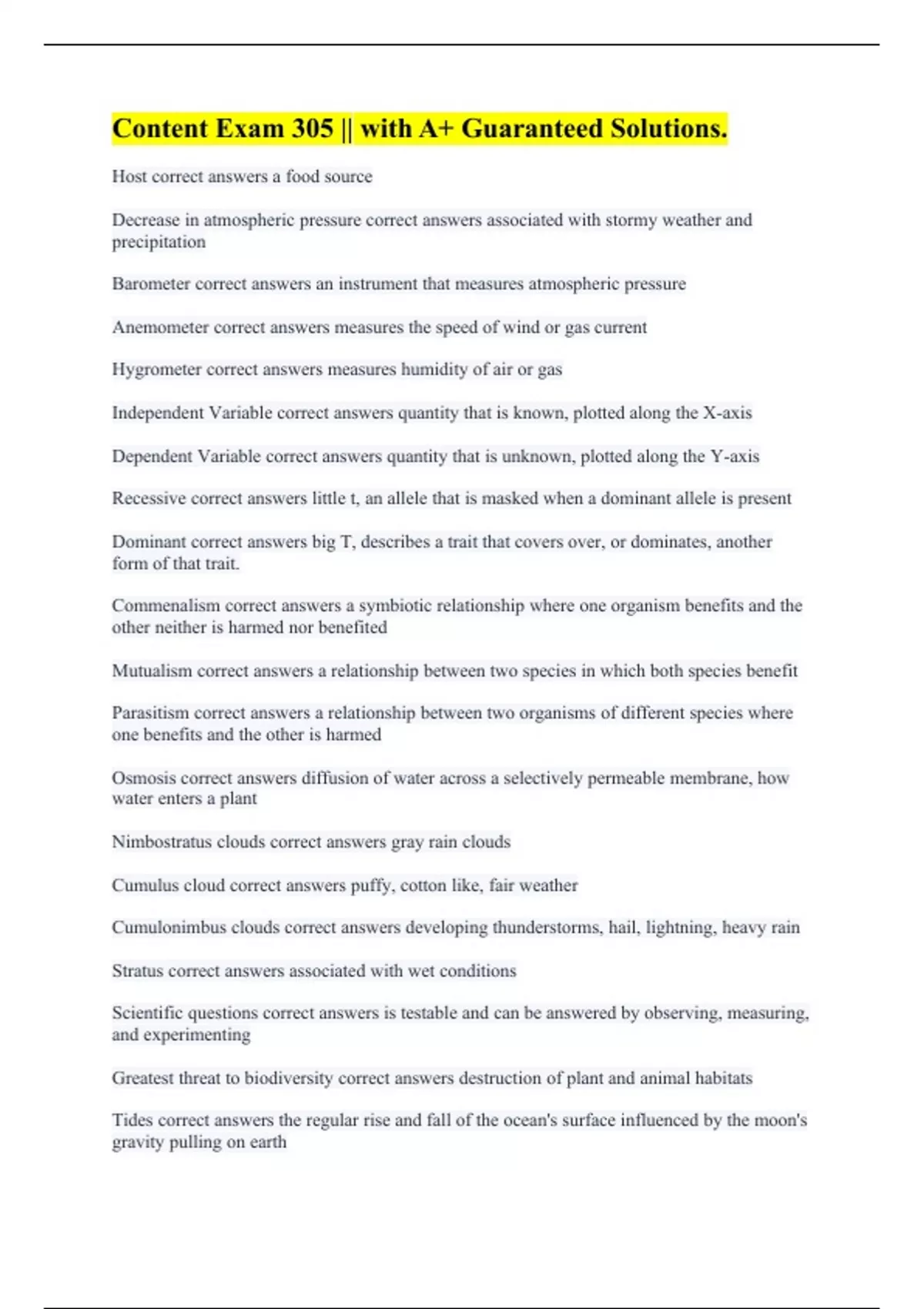 Content Exam 305 || with A+ Guaranteed Solutions.