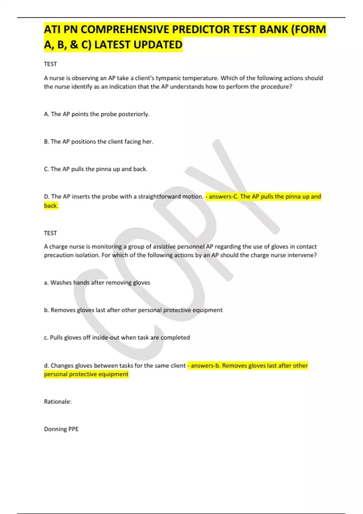 ATI PN COMPREHENSIVE PREDICTOR TEST BANK (FORM A, B, & C) LATEST UPDATED