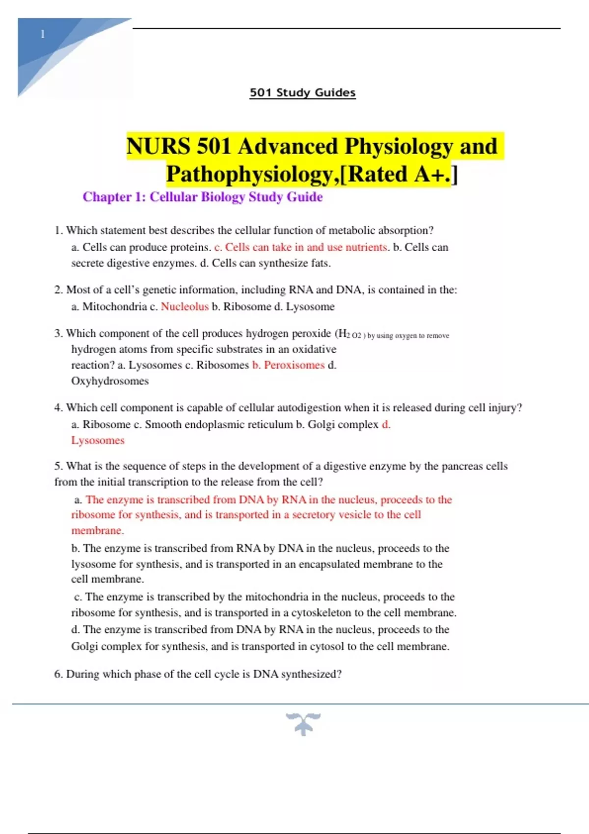 - NURS 501 Advanced Physiology and Pathophysiology,R